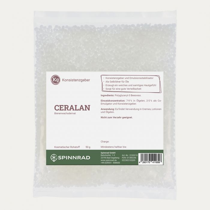 Ceralan ist ein Bienenwachsderivat, ein hellgelbes, feinkrümeliges modifiziertes Bienenwachsderivat.